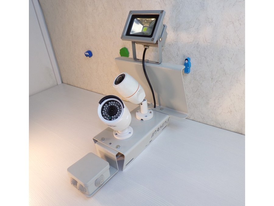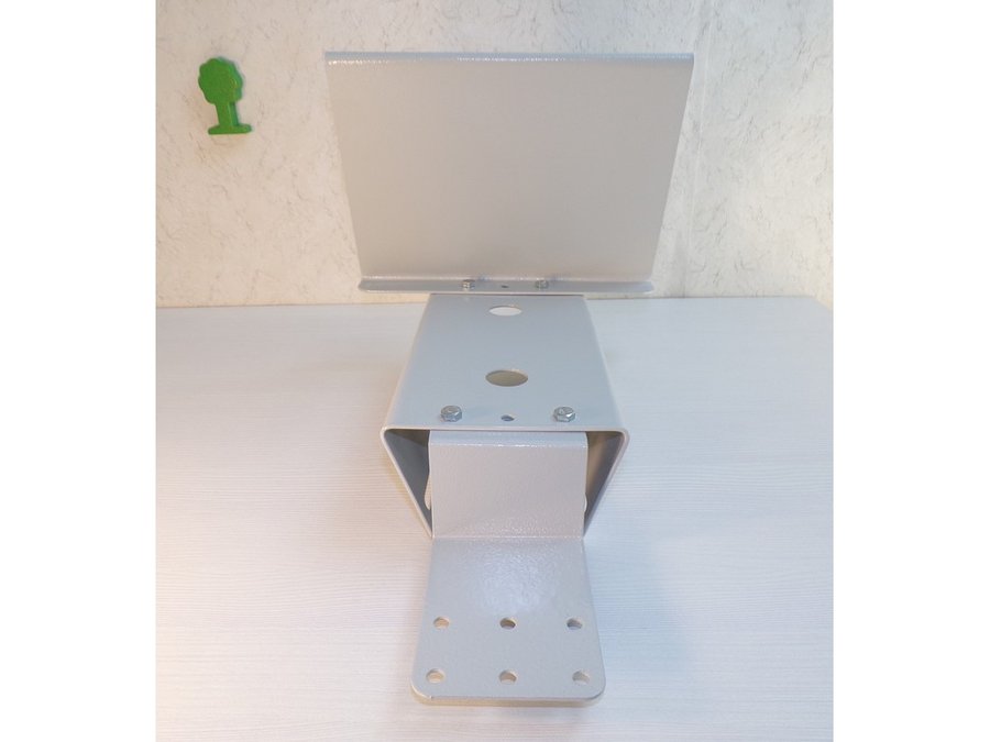 Кронштейн с козырьком и площадкой под монтажную коробку для крепления двух камер и прожектора на столб при помощи ленты или хомутов