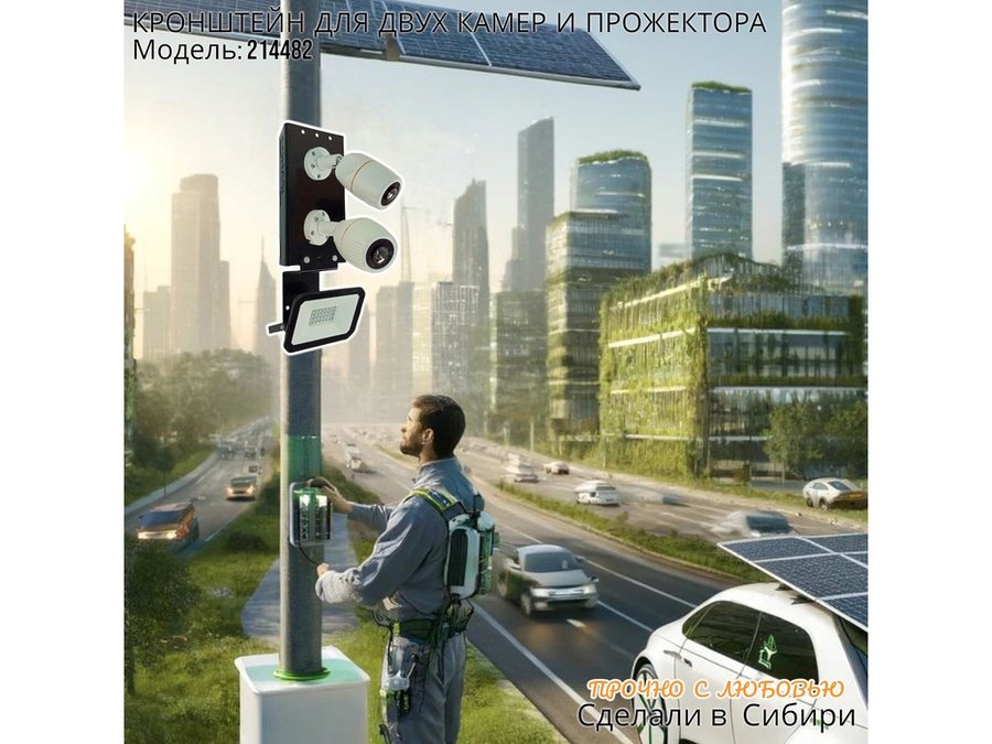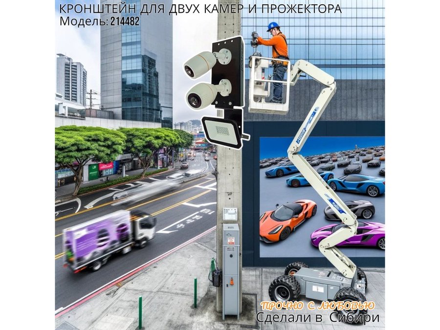 Кронштейн для двух камер на столб с пластиной под прожектор "IPAHD-5-214482" прочная сталь, черный