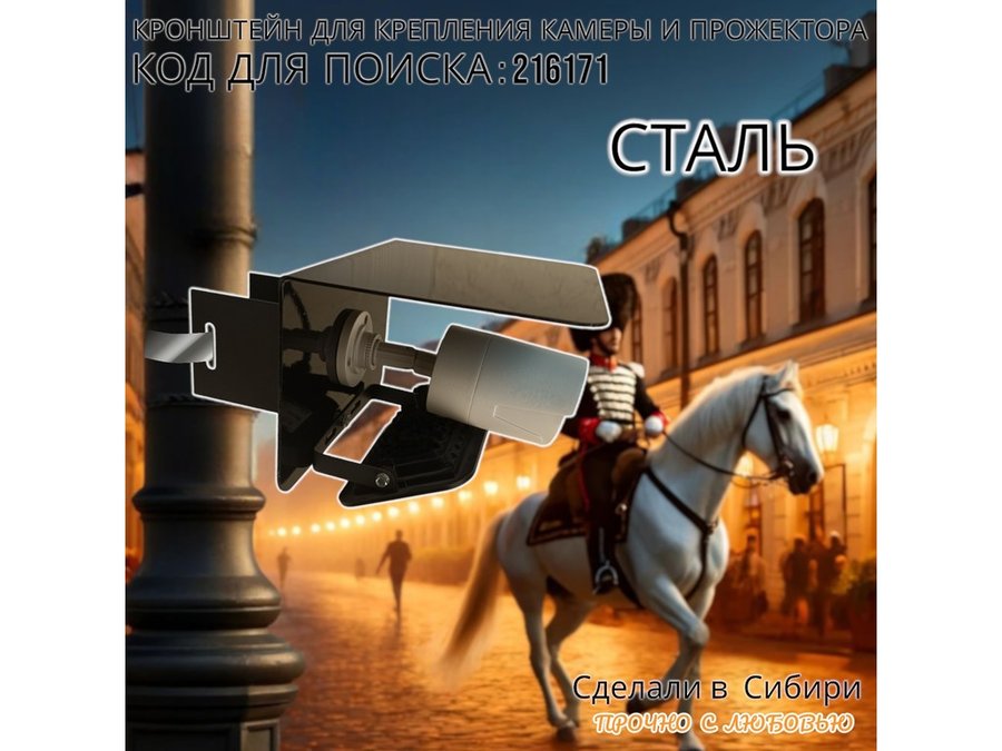 - Кронштейн позволяет быстро зафиксировать прожектор или камеру наблюдения на столб.