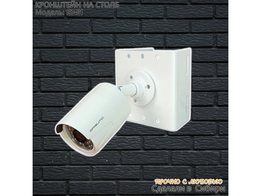 Кронштейн для 1 камеры и прожектора на столб, прочная сталь 2мм белый "IPAHD-101W-197401" под ленту