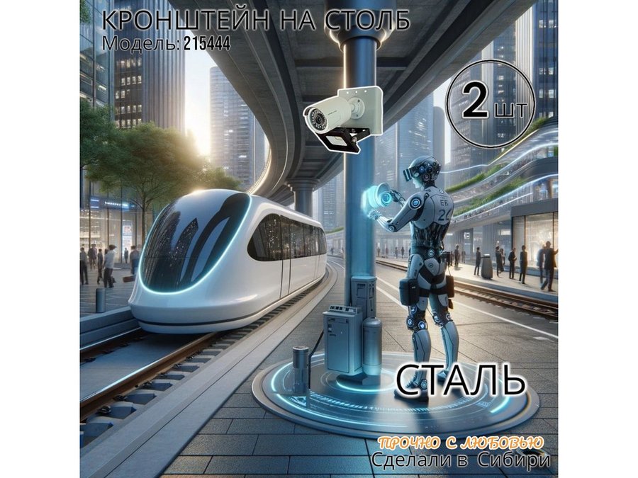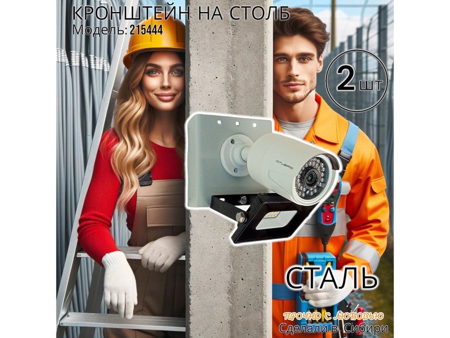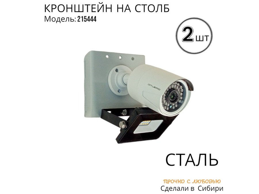- Кронштейн для 1 камеры и прожектора, крепится при помощи СИП ленты монтажной на квадратный или круглый столб. Подходит для любых камер.