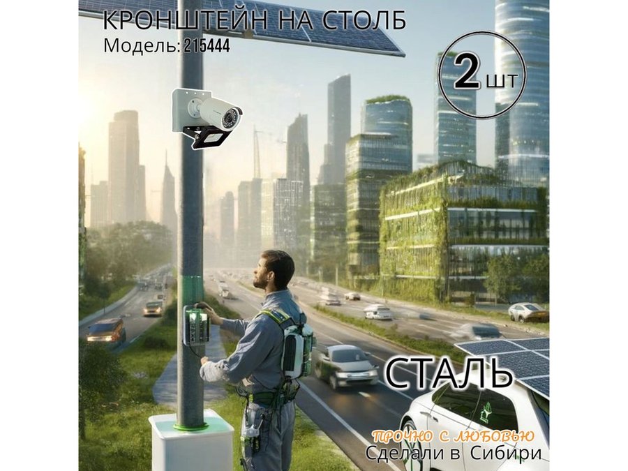 - Кронштейн позволяет быстро зафиксировать камеру и прожектор на столбе, не сверля его.