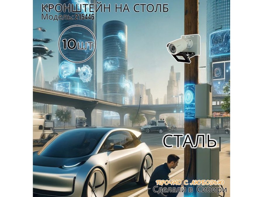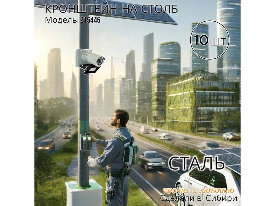 - Кронштейн позволяет быстро зафиксировать камеру и прожектор на столбе, не сверля его.