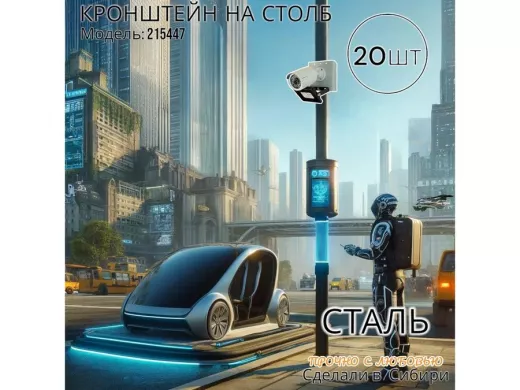 - Кронштейн для 1 камеры и прожектора, крепится при помощи СИП ленты монтажной на квадратный или круглый столб. Подходит для любых камер.