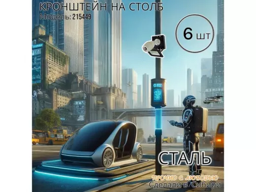 Набор 6 шт. Кронштейн для 1 камеры и прожектора на столб черный "IPAHD-101BK-215449" под хомут