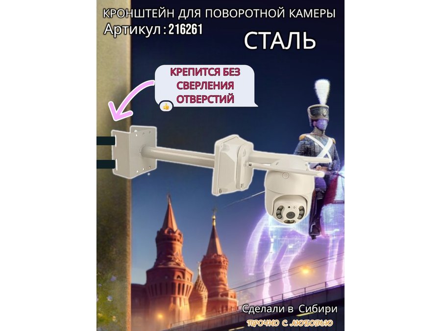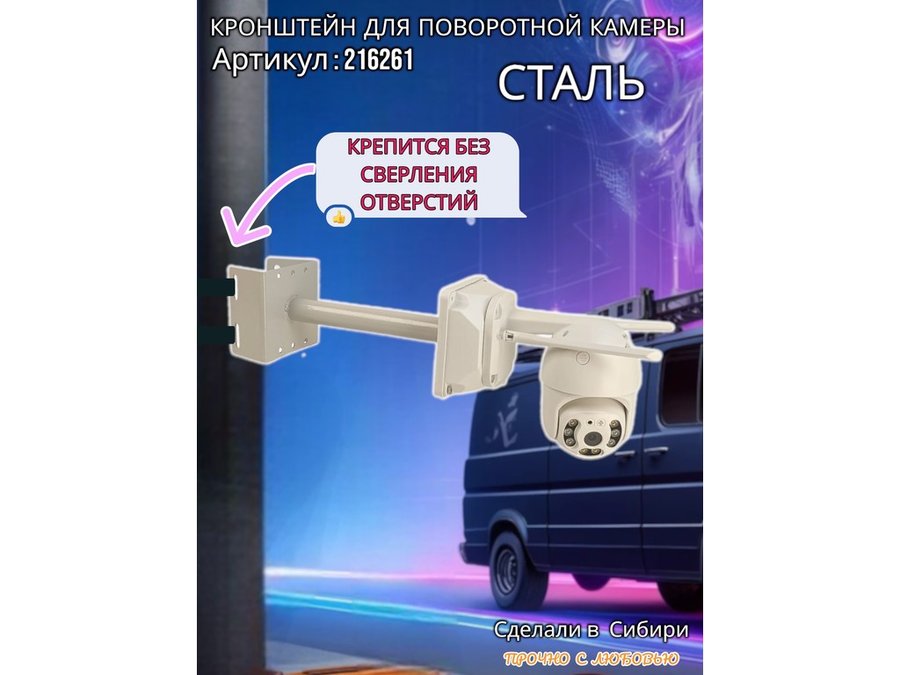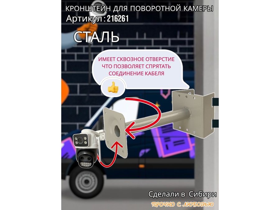 - Стальной кронштейн позволяет вынести камеру от столба на 25 см.