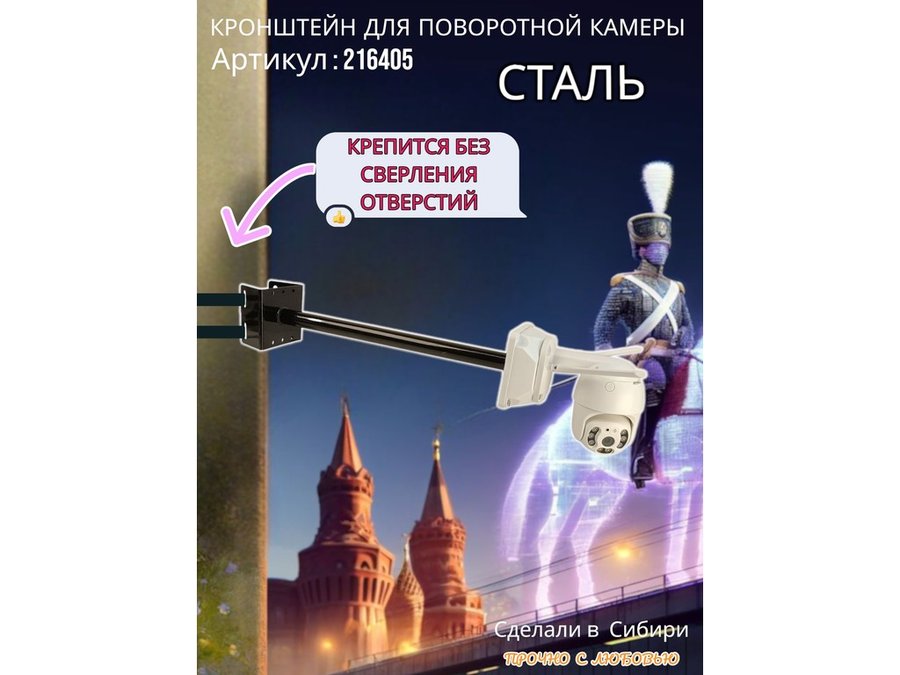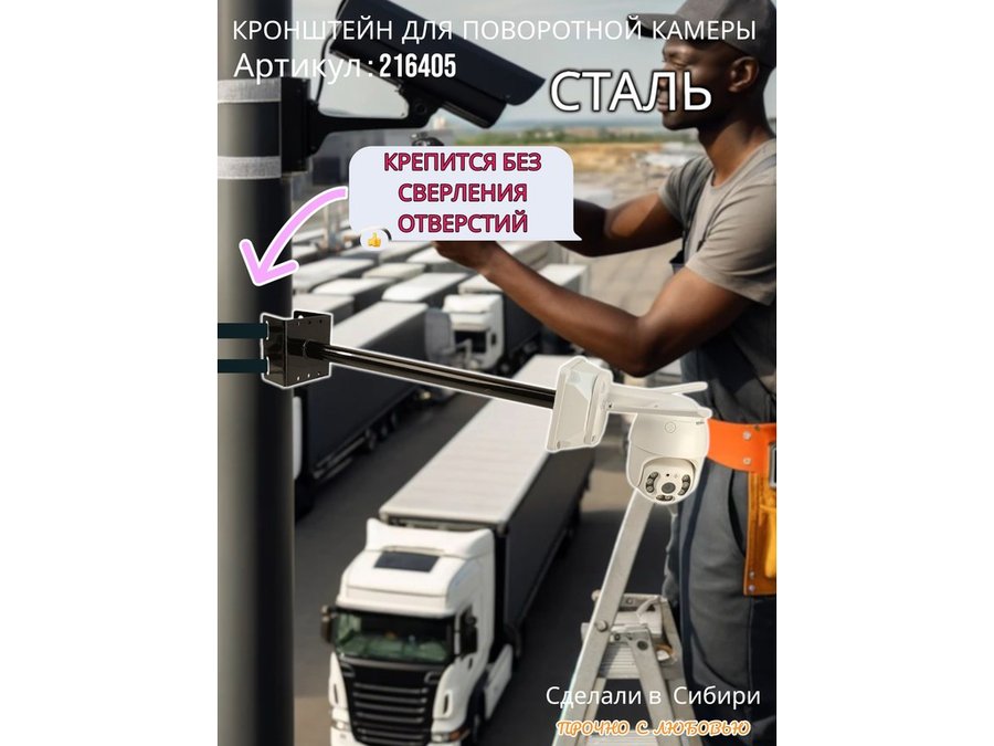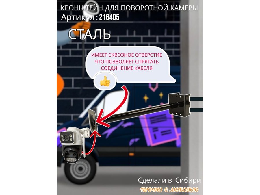 - Стальной кронштейн позволяет вынести камеру от столба на 50 см.