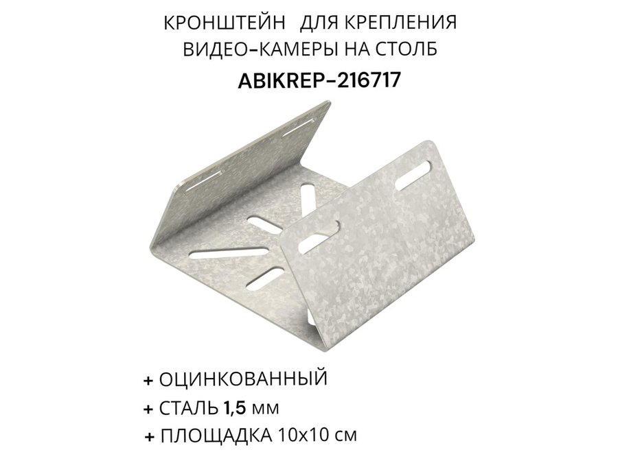 Кронштейн оцинкованный для камеры на столб "ABIKREP-216717" 100х104мм, сталь, под хомуты, вылет 5см