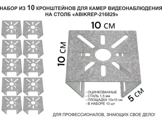 Набор из 10 кронштейнов "ABIKREP-216829". Предназначены для крепления поворотной видео-камеры или прожектора на столбе.