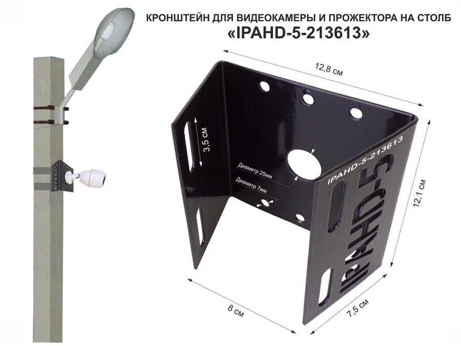 В корзину Купить в 1 клик Кронштейн для камеры и прожектора на столб "IPAHD-5-213613" черный, под СИП-ленту, хомут