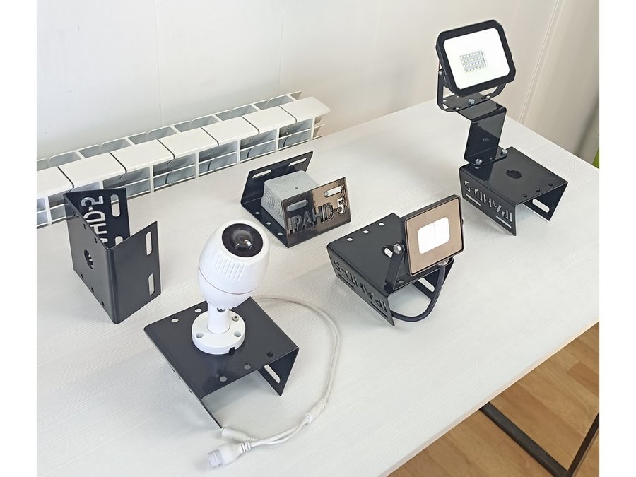 - Кронштейн позволяет быстро зафиксировать камеру и прожектор на столбе, не сверля его.