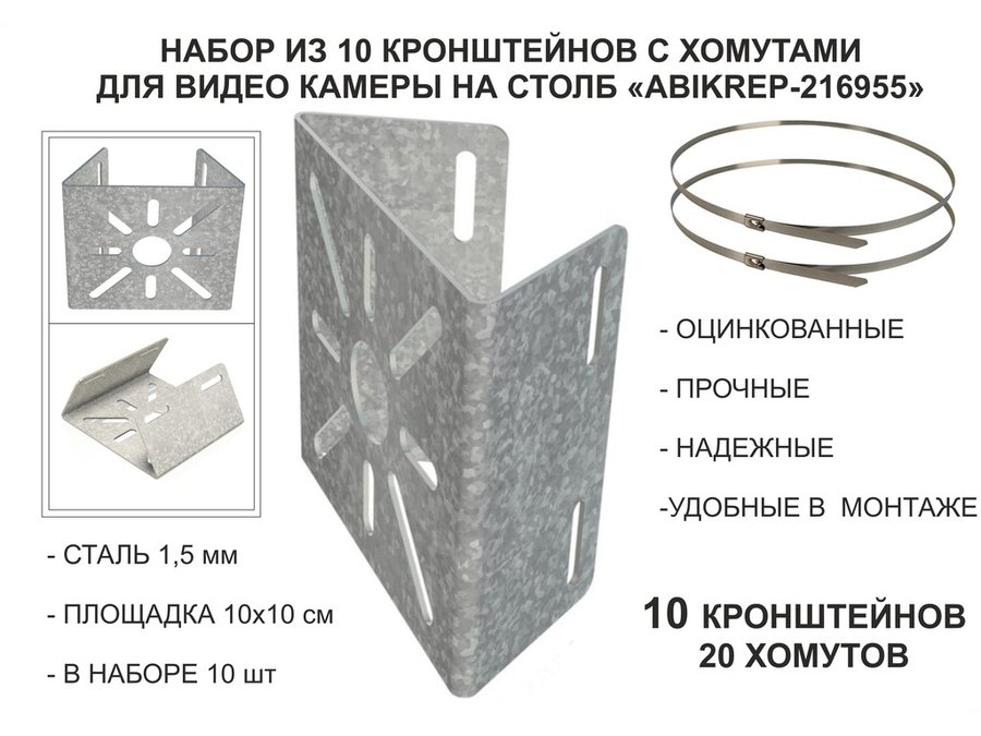 . Для видеокамер. Кронштейны на столб одноместные оцинкованные "ABIKREP" 10х10 см с хомутами