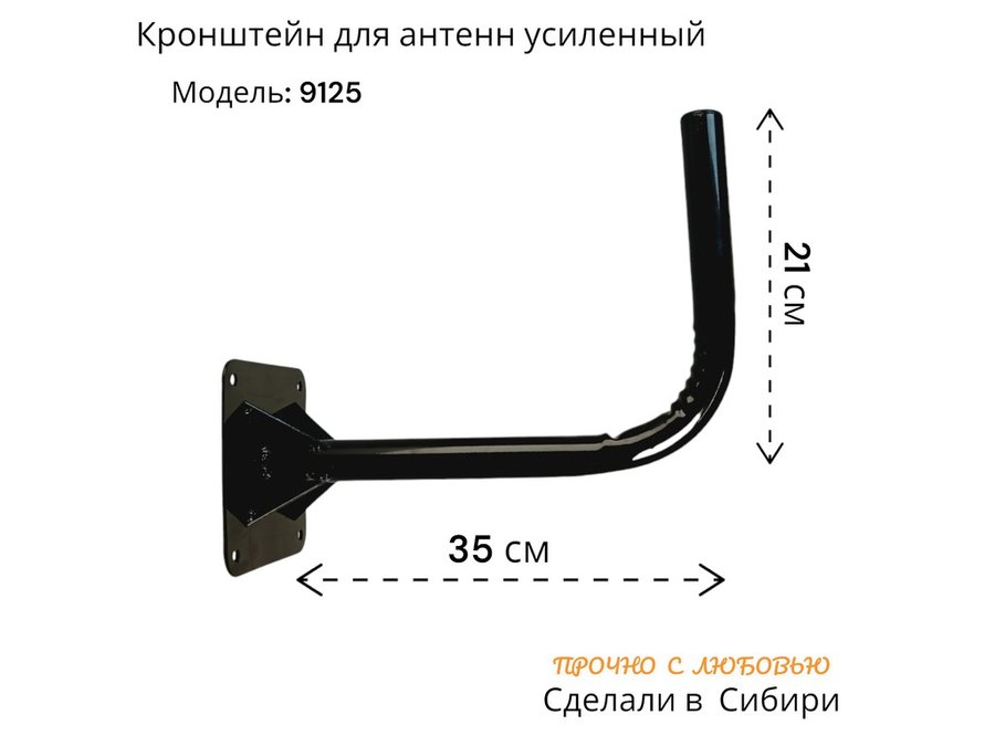Кронштейн антенный "SAT-Г 0,35B-9125" ЧЁРНЫЙ для спутниковых и эфирных антенн; вылет 0,35м; 32мм