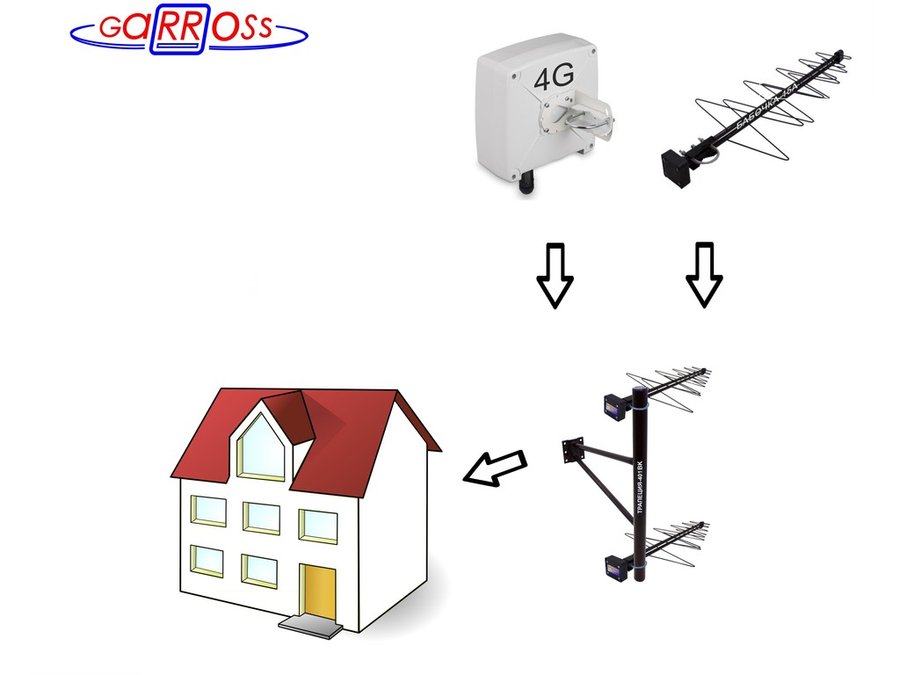 Вынос кронштейна от стены составляет 0,4 м, что обеспечивает возможность поворота антенн в горизонтальной плоскости.