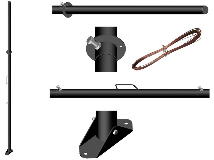 - Мачта укомплетована ПОДПЯТНИКОМ и РАСТЯЖКАМИ проволочными, покрытыми МЕДЬЮ