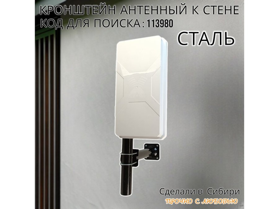 Кронштейн усиленный для мачт, вылет 0,3м "ВЫННОС-300BK-V2-113980" черный с 1отв.25мм для гофры, 51мм