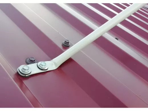 - Наличие жёстких растяжек в виде трубок и качающегося основания позволяют крепить кронштейн-мачту на кровле с различным наклоном.