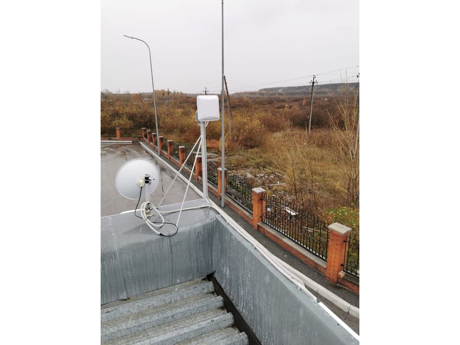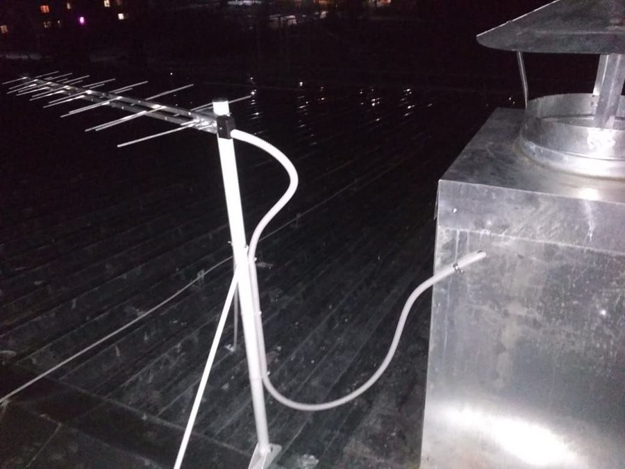 Пример монтажа на одной мачте телевизионной антенны и панельной антенны для беспроводного интернета 3G, 4G