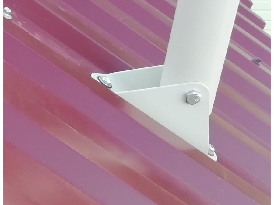 - Наличие жёстких растяжек в виде трубок и качающегося основания позволяют крепить кронштейн-мачту на кровле с различным наклоном.