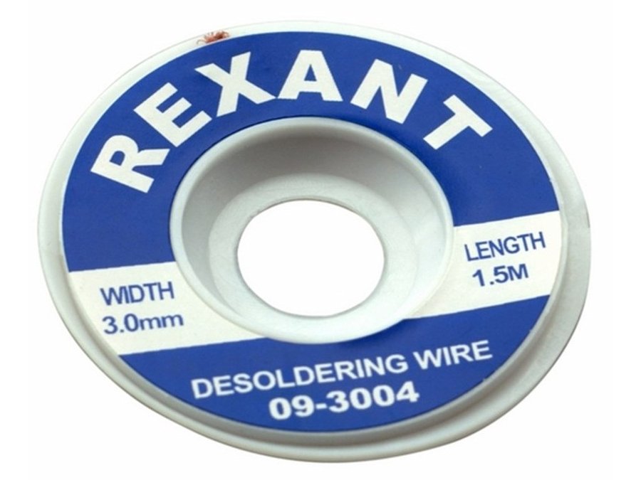 В корзину Купить в 1 клик Медная лента для удаления припоя d=3мм. x 1.5М REXANT