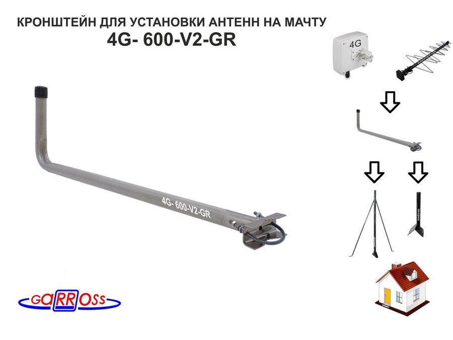 В корзину Купить в 1 клик Кронштейн антенный "4G- 600-V2-GR" СЕРЫЙ; вылет 0,6м, диаметр 22мм, на трубу до 54мм, с хомутом