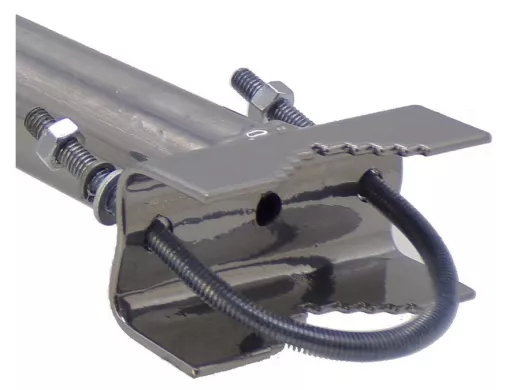 Опора из прочного металла обеспечивает надёжное крепление на трубу.