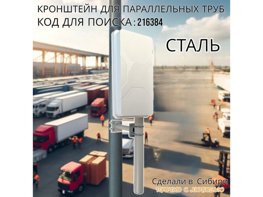 - Универсальный усиленный кронштейн для параллельных труб предназначен для крепления прожектора,антенн,видеокамер на трубе диаметром от 15 до 51мм.