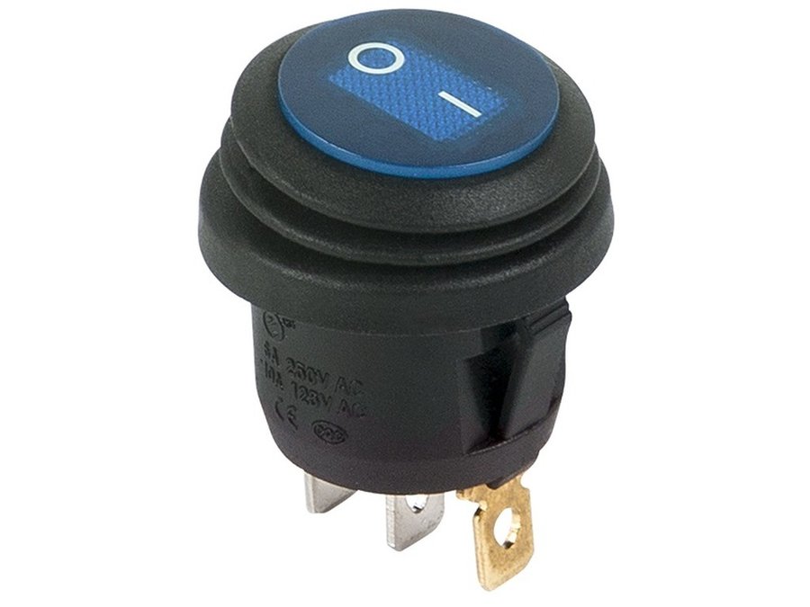 В корзину Купить в 1 клик Выключатель клавишный круглый 250V 6А (3c) ON-OFF синий с подсветкой ВЛАГОЗАЩИТА REXANT