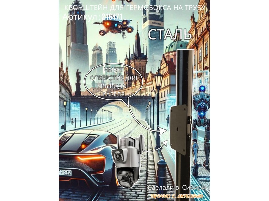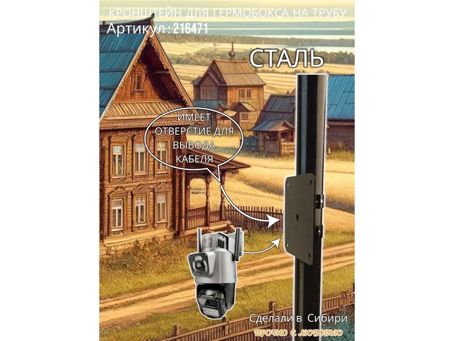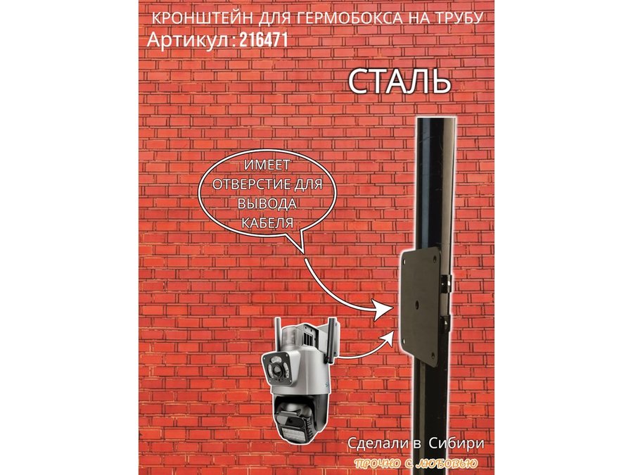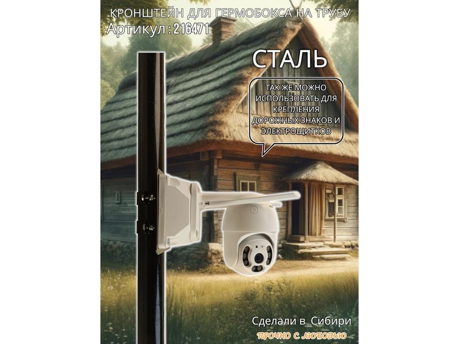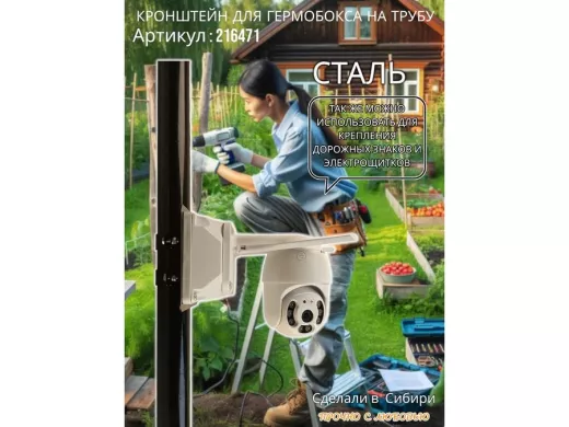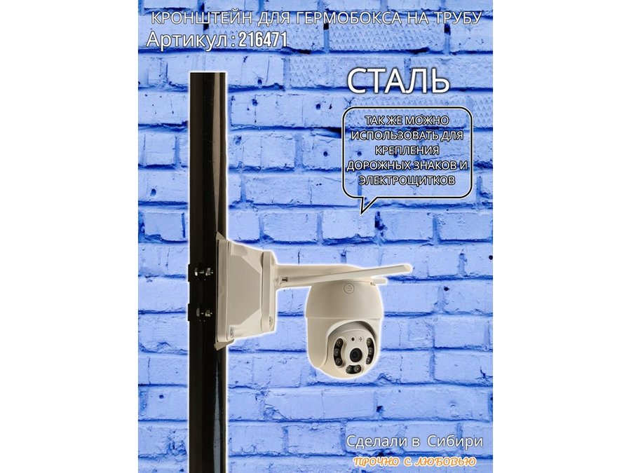 - Кронштейн позволяет быстро зафиксировать гермобокс с видеокамерой на трубу.