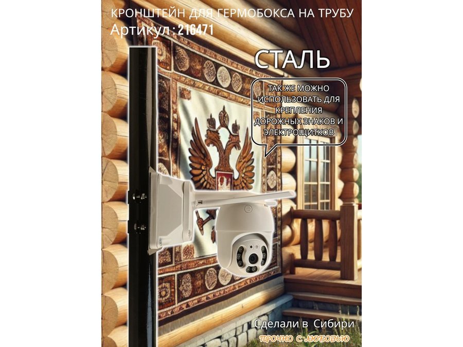 - Универсальный усиленный кронштейн предназначен для крепления гермобоксов,коробок с видеокамерой, дорожных знаков ,электрощитков на трубе диаметром 50мм.