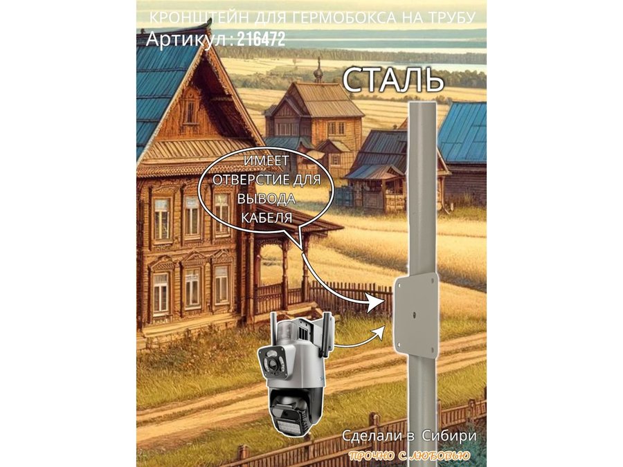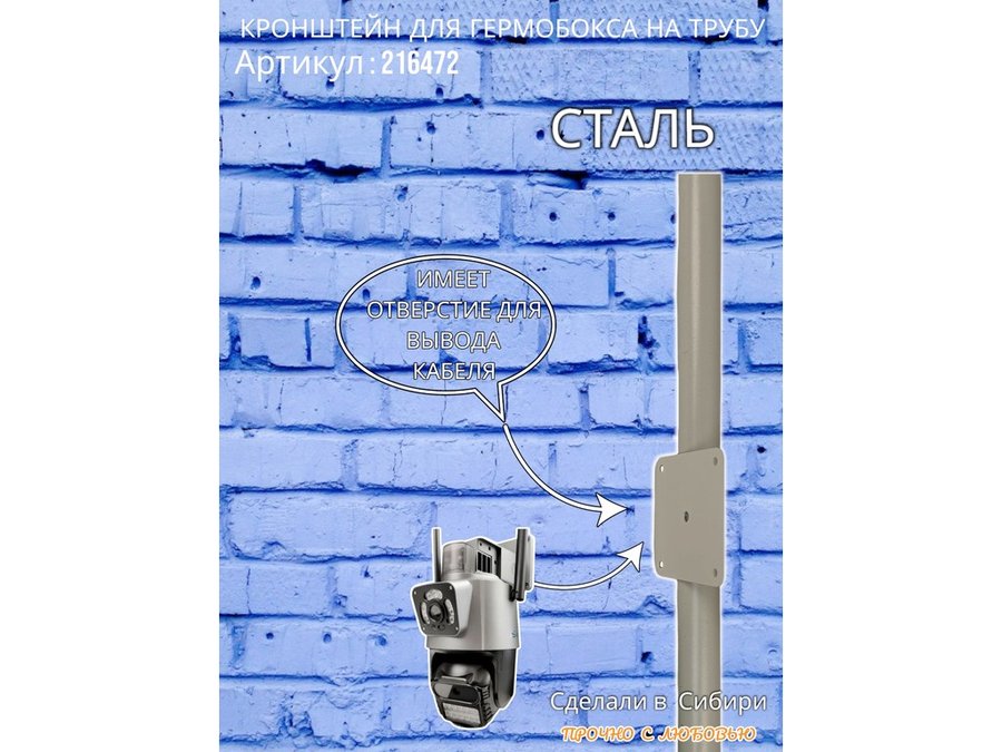 - Кронштейн позволяет быстро зафиксировать гермобокс с видеокамерой на трубу.