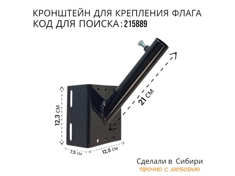 Кронштейн для крепления флага на столб угол 45 градусов "ФЛАГОКРЕП-215889" вылет 21см, сталь,черный