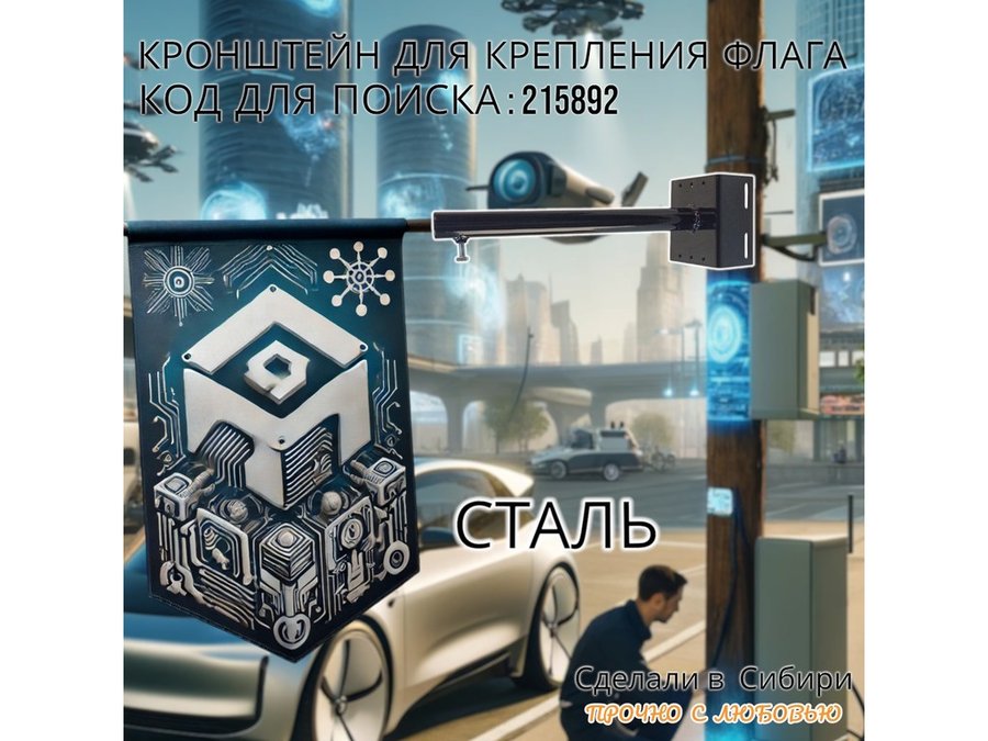 Кронштейн позволяет быстро и прочно зафиксировать флаг или вазон на столбе без его сверления.