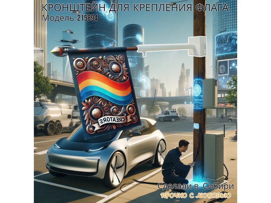 Кронштейн позволяет быстро и прочно зафиксировать флаг или вазон на столбе без его сверления.