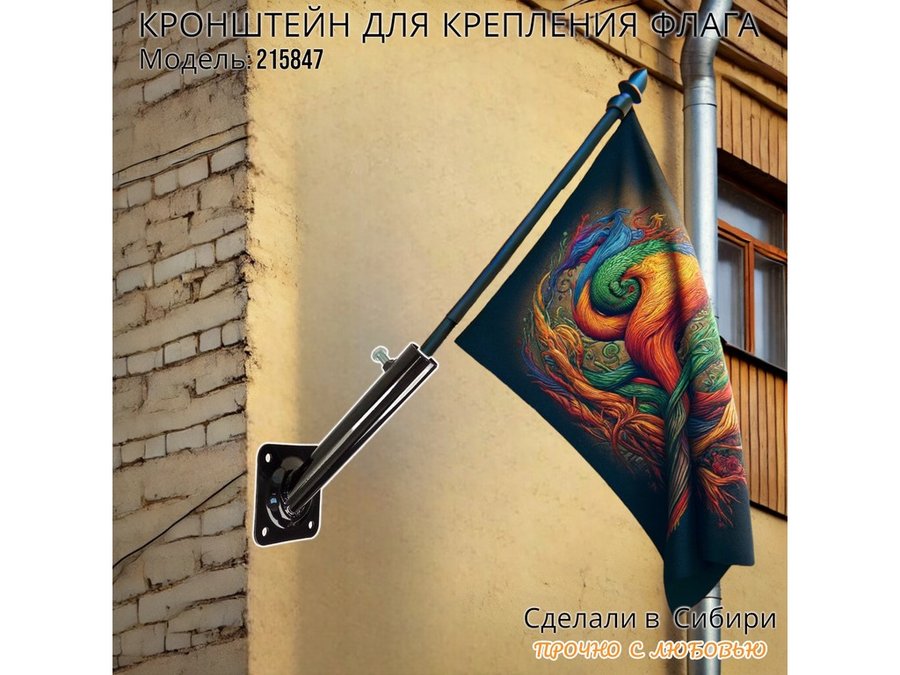 Кронштейн для крепления одного флага на стене угол 45 градусов "ФЛАГОКРЕП-215847" сталь, цвет черный
