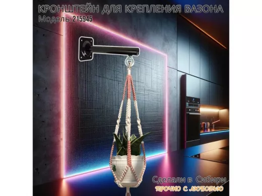 Кронштейн для крепления кашпо, вазона на стене угол 90гр вылет 25см "ПРОСЕКИНО-215945" сталь, черный