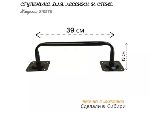 Ступенька для лесенки к стене высота 13 см ширина 39 см "LOFTOM 215578" чёрная