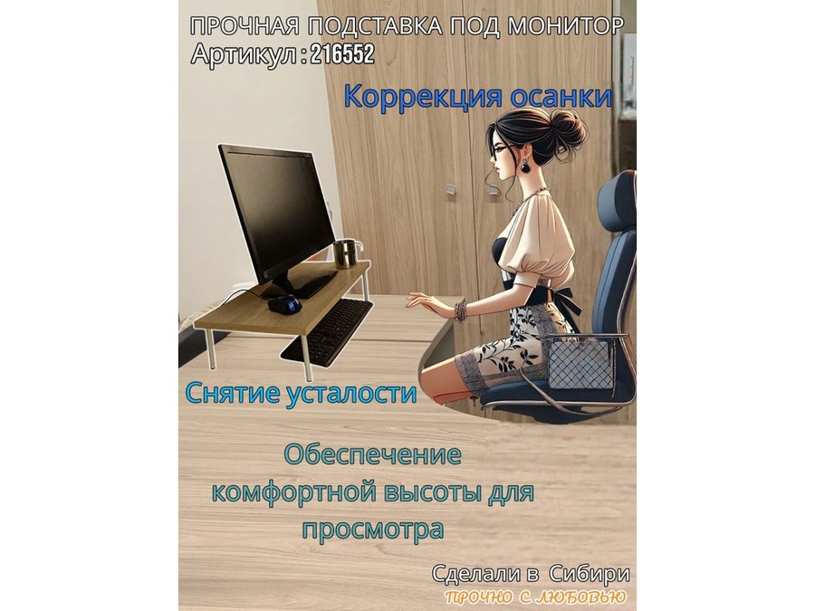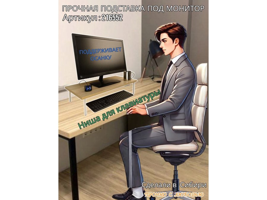 - Универсальная подставка для монитора имеет лаконичный и стильный дизайн, идеально подойдет для любого интерьера.