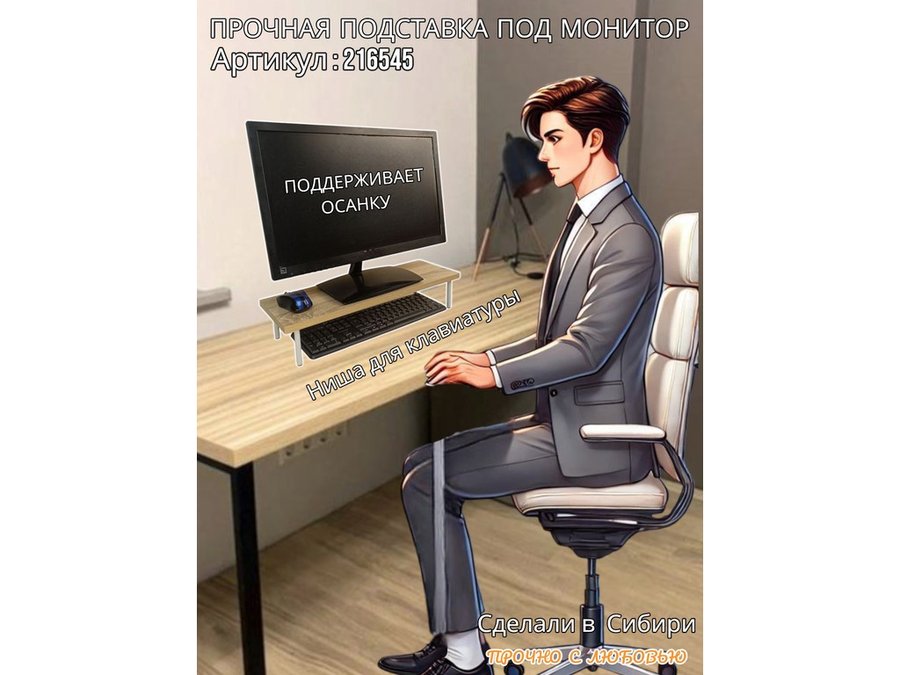 - Универсальная подставка для монитора имеет лаконичный и стильный дизайн, идеально подойдет для любого интерьера.