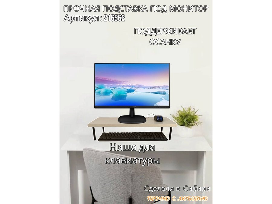 - Универсальная подставка для монитора имеет лаконичный и стильный дизайн, идеально подойдет для любого интерьера.