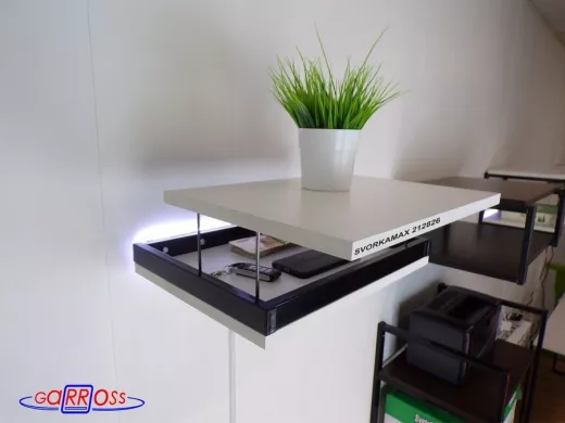 - Полка скрытого крепления укомплектована светодиодной подсветкой с выключателем на шнуре и блоком питания