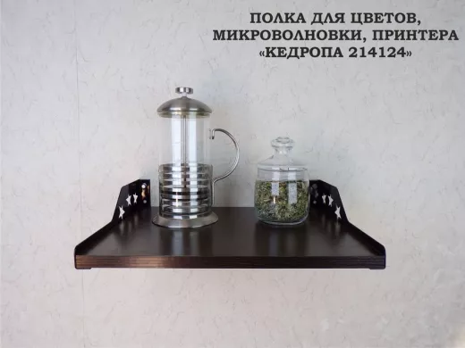 Полка предназначена для цветов, сувениров, декоративных мелочей, можно использовать на кухне для хранения посуды, мелкой бытовой техники, специй и тд.