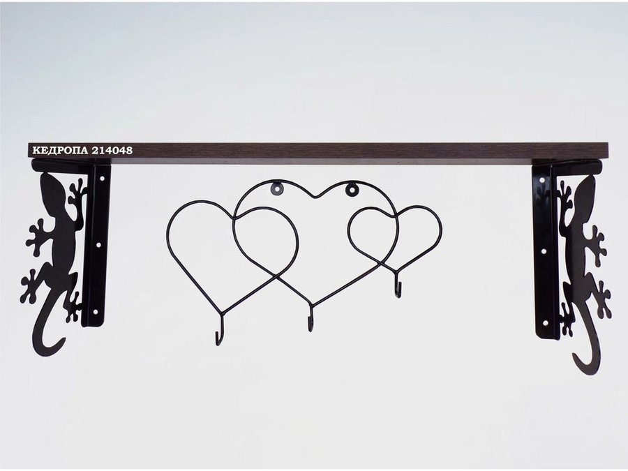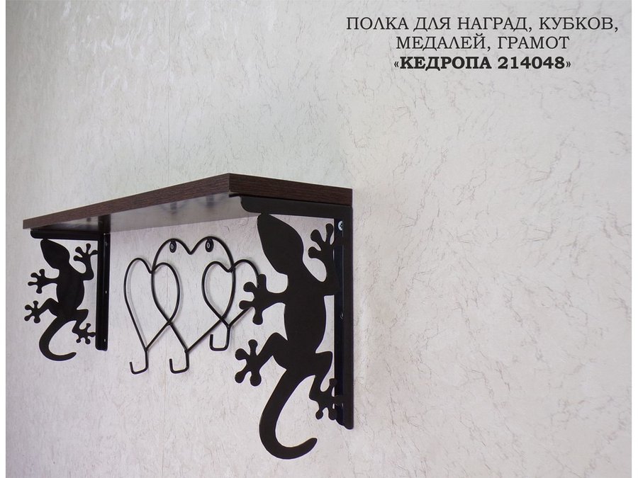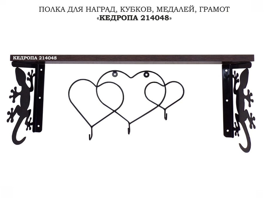 Полка для наград, кубков, медалей, грамот "КЕДРОПА-214048 гекон"размер 15х60х24 см, венге с сердцами