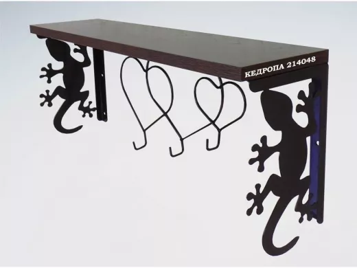 Интересная полка с профилем гекона и тремя крючками, позволит разнообразить интерьер, сделать его непохожим, уникальным, запоминающимся.