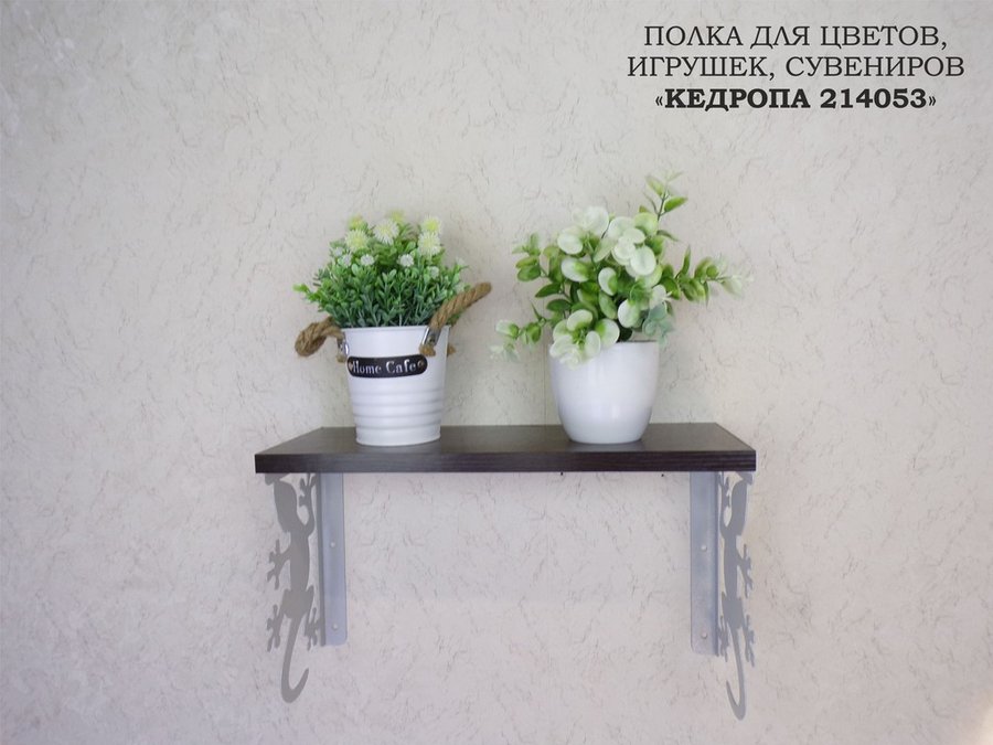 Полка для цветов, игрушек,сувениров "КЕДРОПА-214053 гекон" размер 15х40х24 см, серый, венге