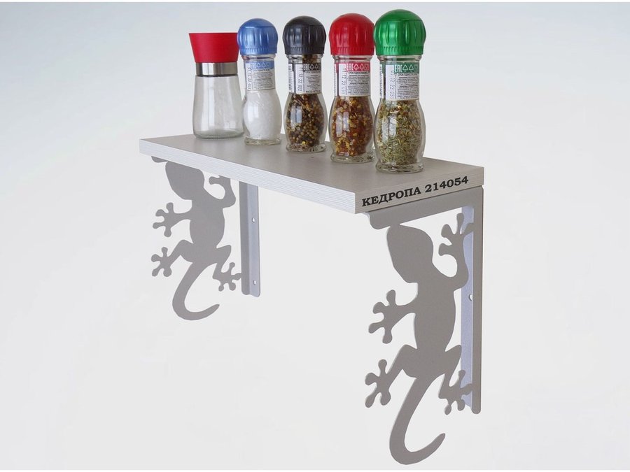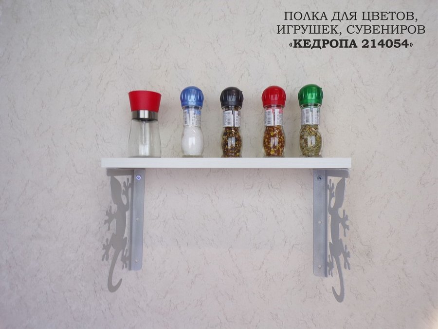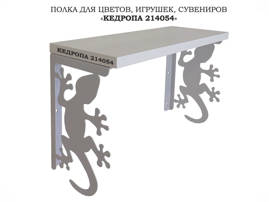 Полка для цветов, игрушек,сувениров "КЕДРОПА-214054 гекон" размер 15х40х24 см, серый, сосна