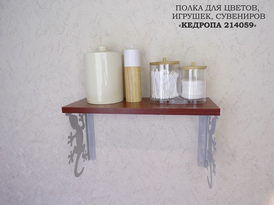 Полка для цветов, игрушек,сувениров "КЕДРОПА-214059 гекон" размер 15х40х24 см, серый, орех итал