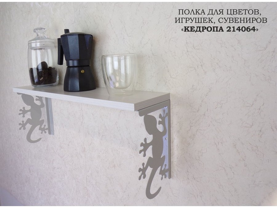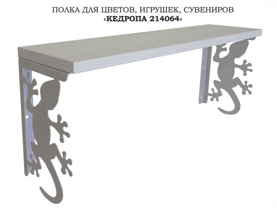 Полка для цветов, игрушек,сувениров "КЕДРОПА-214064 гекон" размер 15х60х24 см, серый, сосна