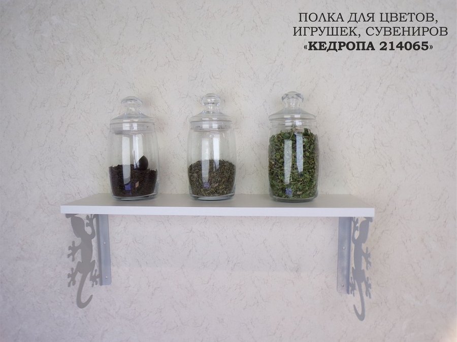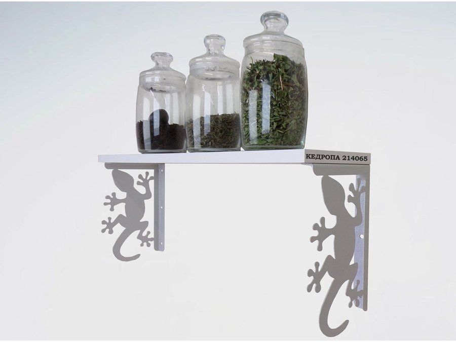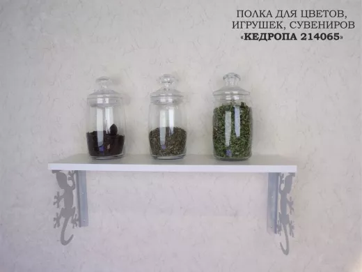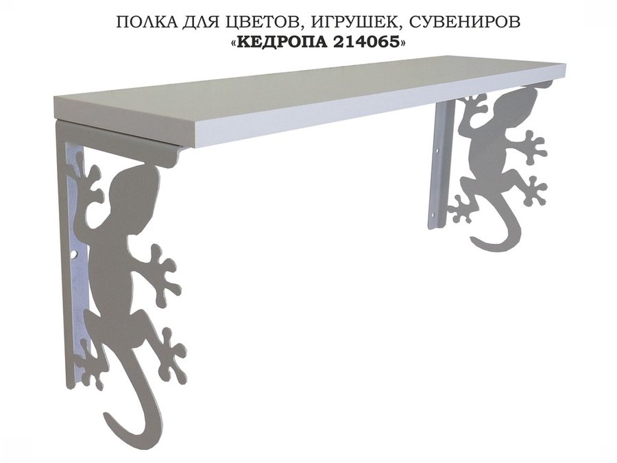 Полка для цветов, игрушек,сувениров "КЕДРОПА-214065 гекон" размер 15х60х24 см, серый, белый шагрань