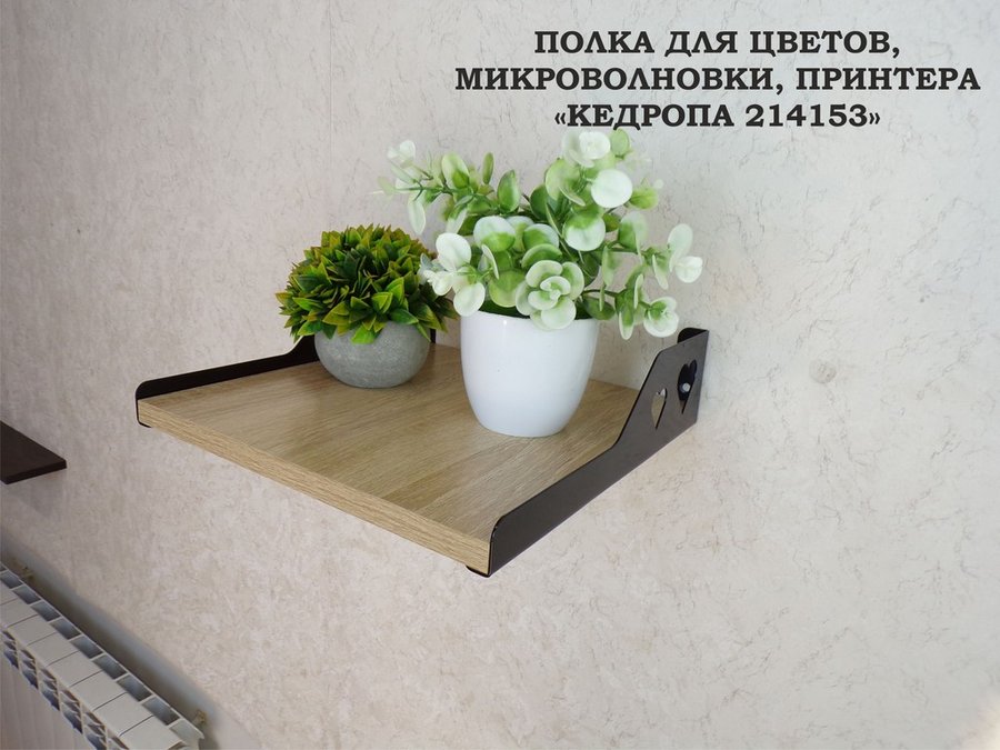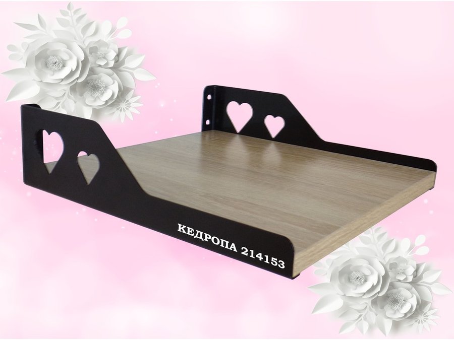 Полка для цветов, микроволновки, принтера "КЕДРОПА-214153" размер 30х30х10 см, дуб сонома, сердце